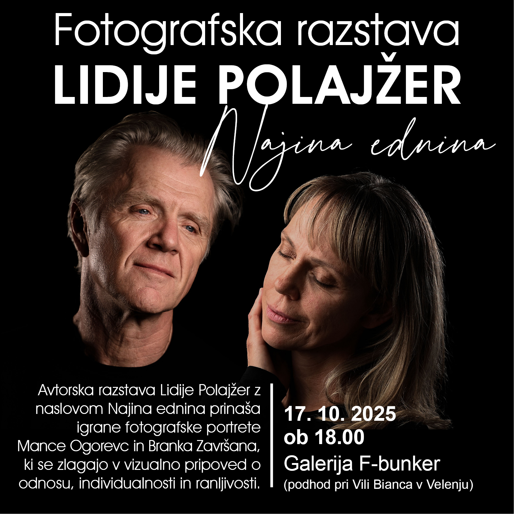 Vljudno vabljeni na otvoritev ter ogled samostojne razstave naše predsednice Lidije Polajžer z naslovom NAJINA DVOJINA.