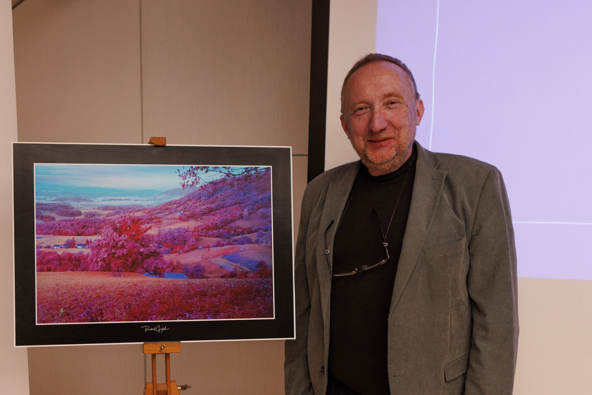 Po ogledu Fotohiše Pelikan je, v novi predavalnici na podstrešju, Robert Gajšek pripravil predavanje o infrardeči (IR) svetlobi v fotografiji. Robert Gajšek se že nekaj časa ukvarja s fotografijo in ima strokovni naziv F1 FZS. Rad eksperimentira z novimi tehnikami, tudi z IR fotografijo. Na natečaju v Ameriki je tako osvojil drugo mesto v kategoriji Chrome Candy, kar je bilo objavljeno in predstavljeno tudi v spletni izdaji revije Forbes. IR fotografija omogoča videti našim očem nevidno svetlobo, ki nam svet in vesolje pokaže na povsem drugačen način.
